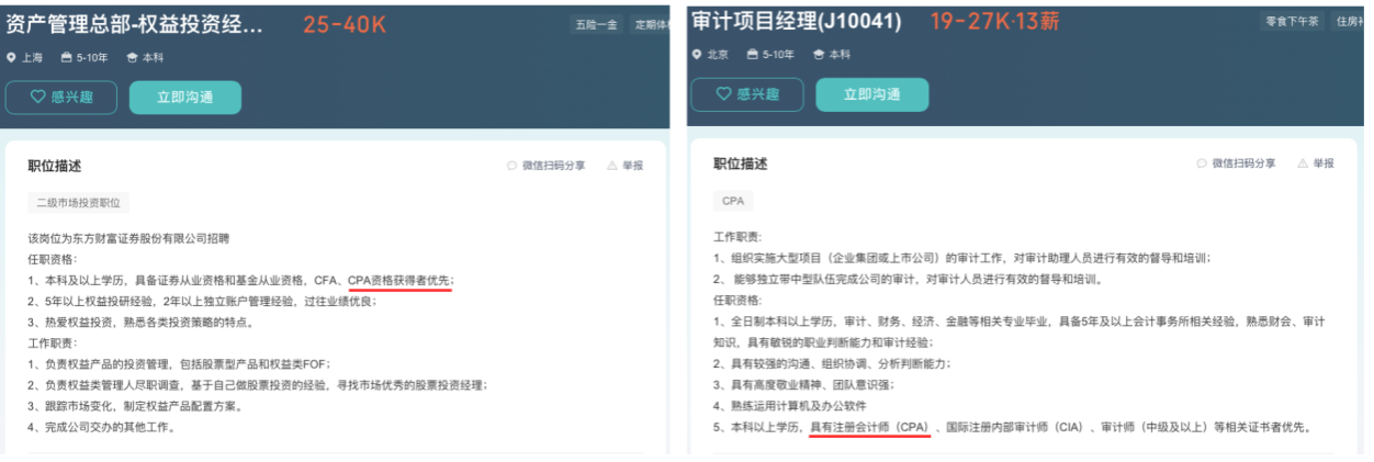 CPA持证人可入职的公司