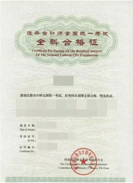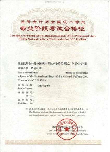 CPA专业阶段和全科考试通过证书