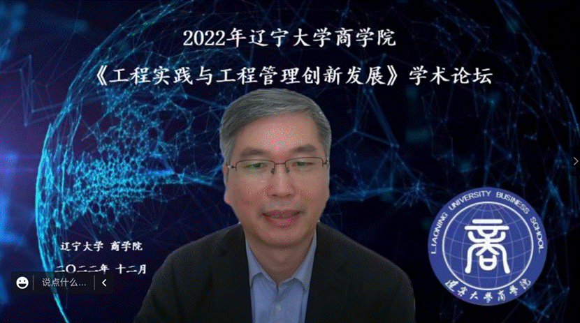 2022年12月6日,yl6809永利检测中心成功举办工程实践与管理创新发展论坛,论坛采取线上方式举行。此次论坛邀请了国家百千万工程第一、二层次人选和国务院特殊津贴获得者重庆大学任宏教授,中国铁路总公司工程管理专业带头人、中国建设工程造价管理协会王中和秘书长,东南大学教学委员会副主任、东南大学建设与房地产研究所所长、东南大学PPP国际研究中心主任,国务院政府特殊津贴专家李启明教授,国务院政府特殊津贴专家、中国建设工程造价管理协会专家委员会常务副主任、北京市建设工程招标投标与造价管理协会专家委员会名誉主任、“一带一路”(中国)仲裁院副院长、北京广惠创研科技中心主任吴佐民教授,中国建筑第一工程局东北区域公司副总工程师杨光,国家一级建造师、沈阳北方建设股份有限公司经理助理任成华高级工程师,yl6809永利检测中心管理科学与工程一级学科带头人、永利官网创新与企业家研究中心主任、永利官网大数据应用与商业智能实验室主任郭燕青教授出席论坛并做了主题报告,200余名师生代表参加了本次论坛。yl6809永利检测中心副院长张广宁教授主持了本次论坛。