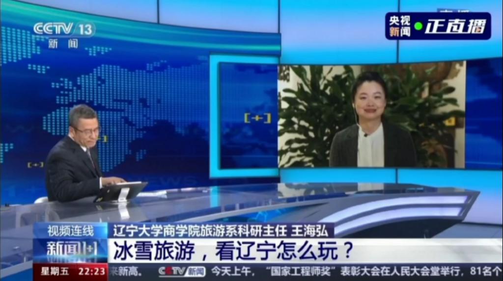 1月19日,中央电视台《新闻1+1》现场直播采访了yl6809永利检测中心旅游系科研主任王海弘教授。节目中,王海弘教授就辽宁冰雪旅游产业发展的亮点和热点问题进行了剖析,认为辽宁冰雪旅游产品是“美丽风景”+“美好体验”+“美好生活”的全方位供给。同时指出持续改善营商环境是辽宁全面振兴的重要抓手和着力点,通过营商环境的持续优化,通过文旅产业的持续引流,越来越多的央企和国企会看到辽宁文旅的投资潜力。最后,就“各地文旅局长特别卷,都在努力做推介”这个热点问题,王海弘教授为各地文旅局长点赞的同时,也指出“热现象”更要“冷思考”,新媒体营销的同时,文旅产业也一定要练好“内功”,把文旅产品做扎实,把文旅产业做扎实,把服务做扎实,这样才能给所有旅游者带来最好的旅游体验!
