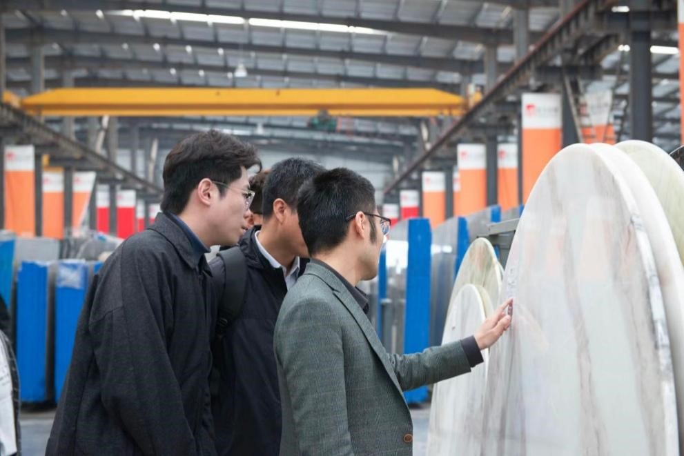 4月29日,市场营销系师生由李四化副教授带队前往沈阳宏大石材公司开展实践课堂活动。在公司创始人吴总的引领下,师生们先后参观了石材仓库和奢石餐桌展陈空间,切身感受了石材的天然之美和石材人的匠心独具。随后,师生们来到石材加工车间,见证了从原始石材到精美产品的加工过程。在交流环节,吴总详细介绍了公司的发展历程、新业务及新商业模式,电商部门负责人分享了奢石产品系列的电商营销之路。营销学生积极发言互动,针对新产品开发、社交媒体电商、公司流程再造等问题与相关负责人展开积极交流。此次调研活动让学生们对石材行业的现状和发展趋势有了更深入的了解,同时也深刻体会到市场营销策略在企业实践中的应用和重要作用。
