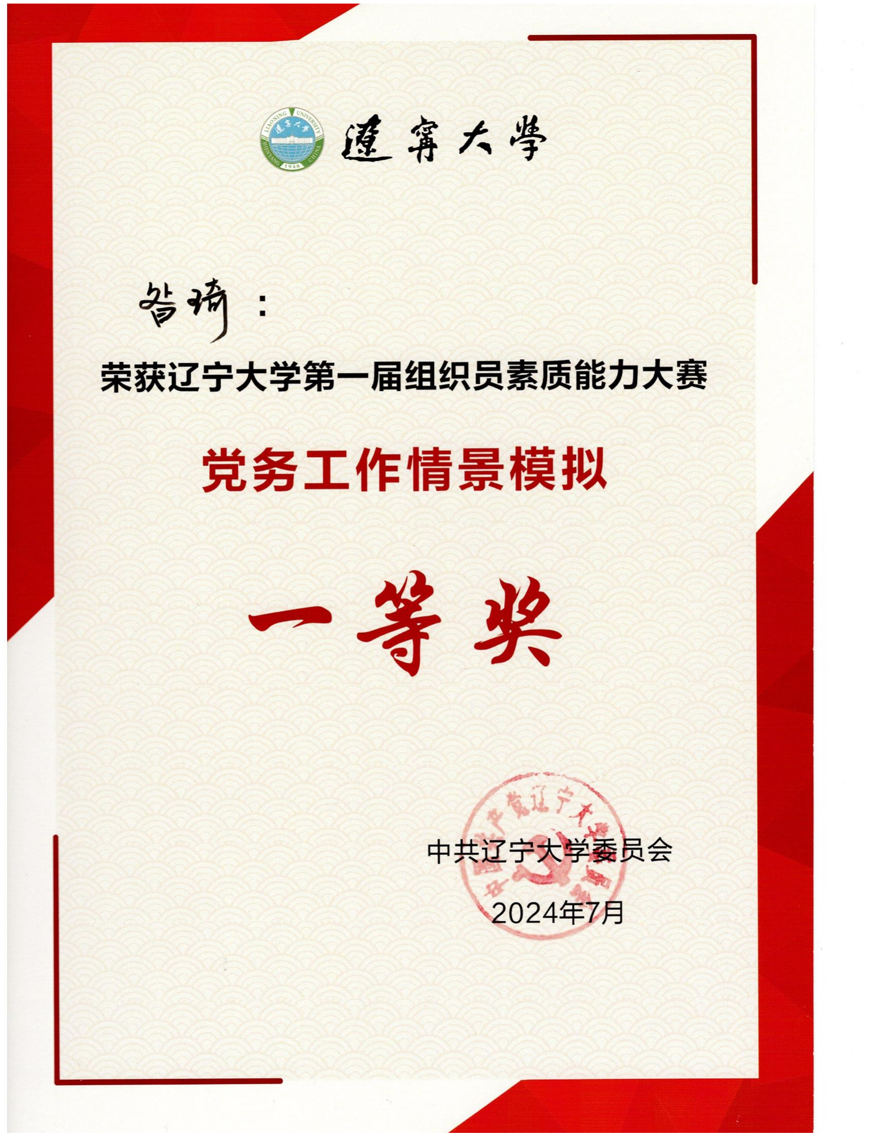 近日,yl6809永利党委专职组织员昝琦在永利官网第一届组织员素质能力大赛中荣获素质能力大赛总成绩二等奖,获得工作方案策划单项赛二等奖,工作情景模拟单项赛一等奖。