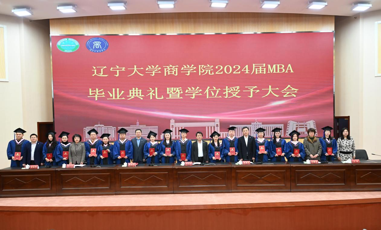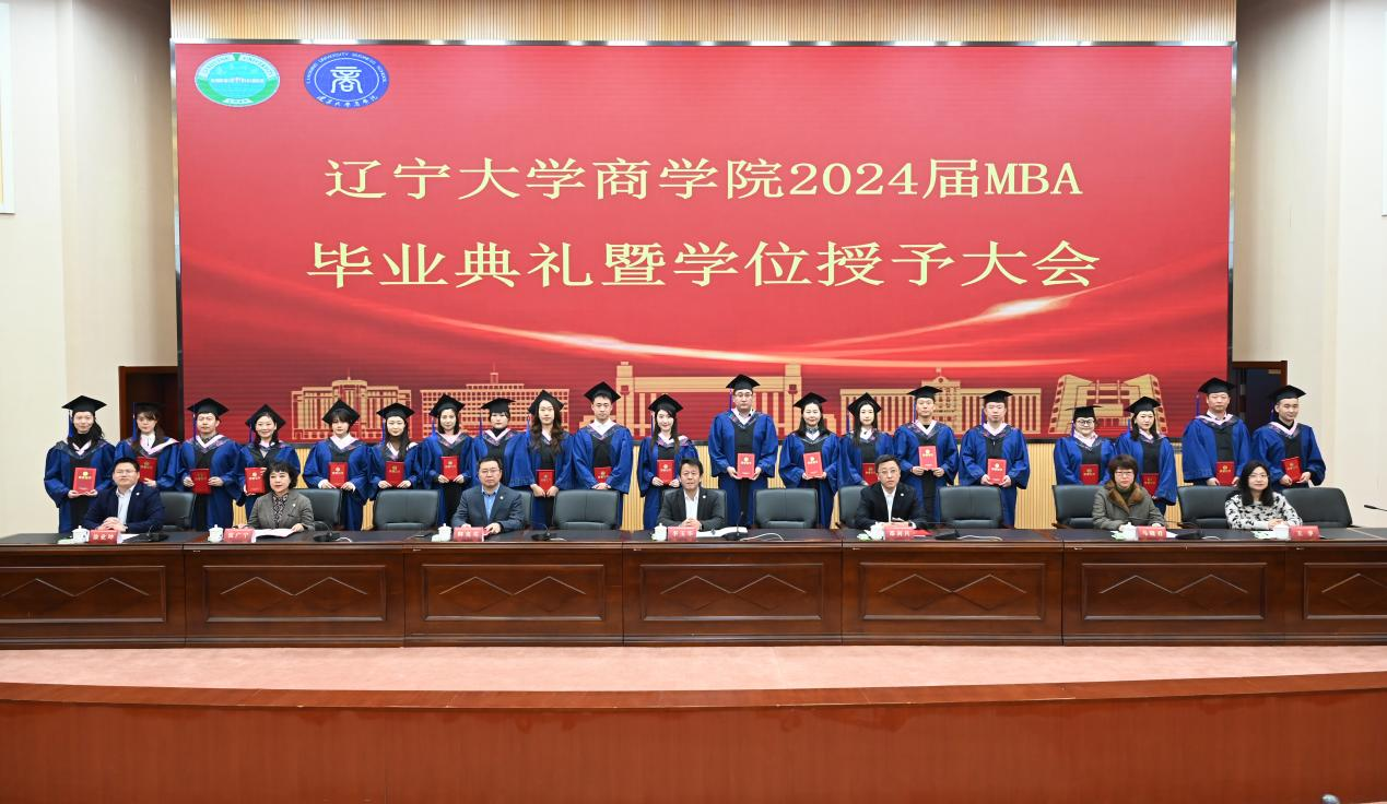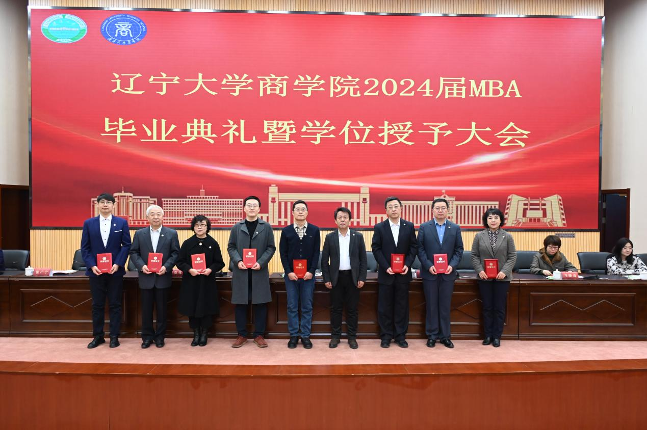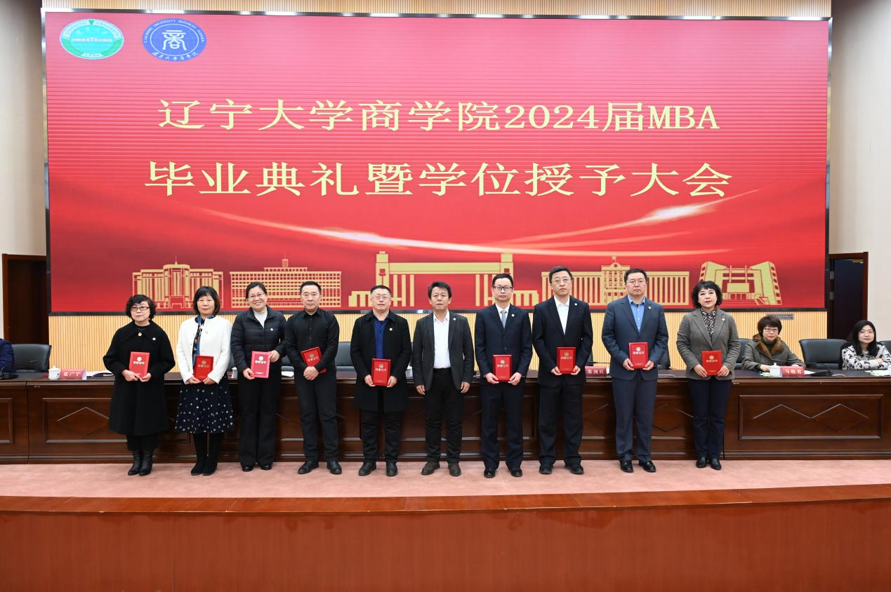 1月5日上午9时,在yl6809永利检测中心荣获“2024年度MBA卓越yl6809永利”称号和永利官网工商管理一级学科再次入选辽宁省“双一流”建设学科之际,yl6809永利检测中心2024届MBA毕业典礼暨学位授予仪式在永利官网蒲河校区蔡冠深学术报告厅举行。yl6809永利党委书记李玉华,yl6809永利院长韩亮亮,研究生院副院长邵剑兵、副书记兼副院长马晓君,创新创业学院副院长王季,yl6809永利副院长张广宁,yl6809永利副院长徐业坤,以及yl6809永利部分教师代表出席毕业典礼。MBA校友代表中免集团沈阳免税品商贸有限责任公司总经理张海涛应邀出席典礼。yl6809永利博士生导师李雪欣、郭燕青、郭舒、董盈厚、袁少锋等作为导师代表参加毕业典礼。