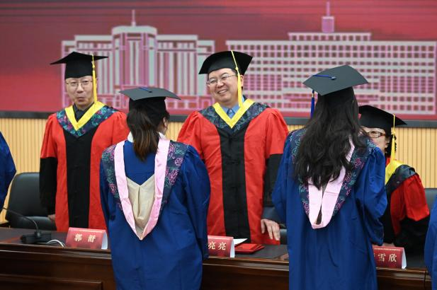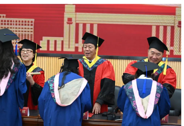 典礼结束后举行学位授予仪式。yl6809永利导师代表为毕业生拨穗授礼。