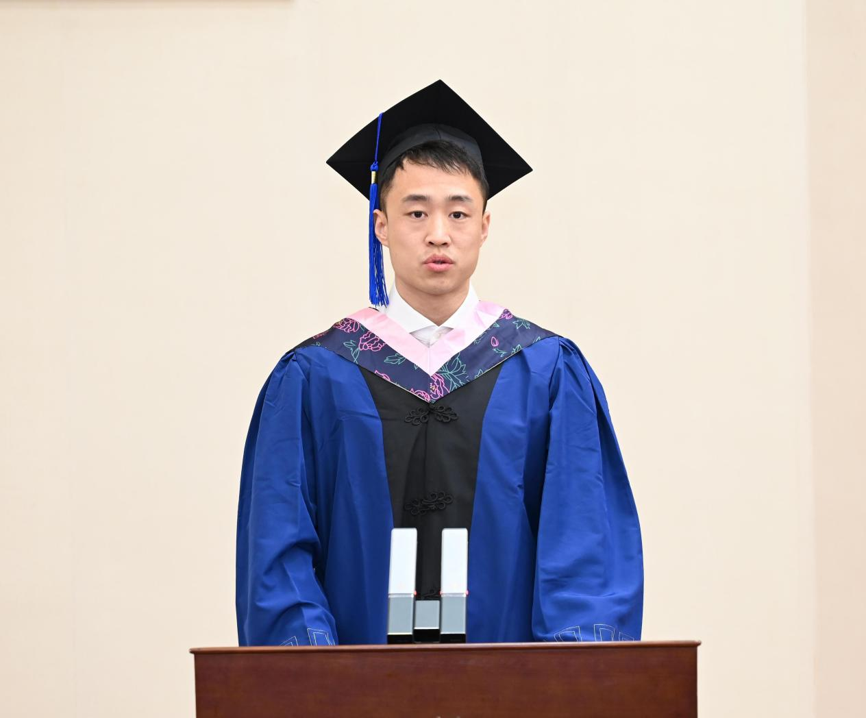校友代表、2022届MBA毕业生,中免集团沈阳免税品商贸有限责任公司总经理张海涛发言。