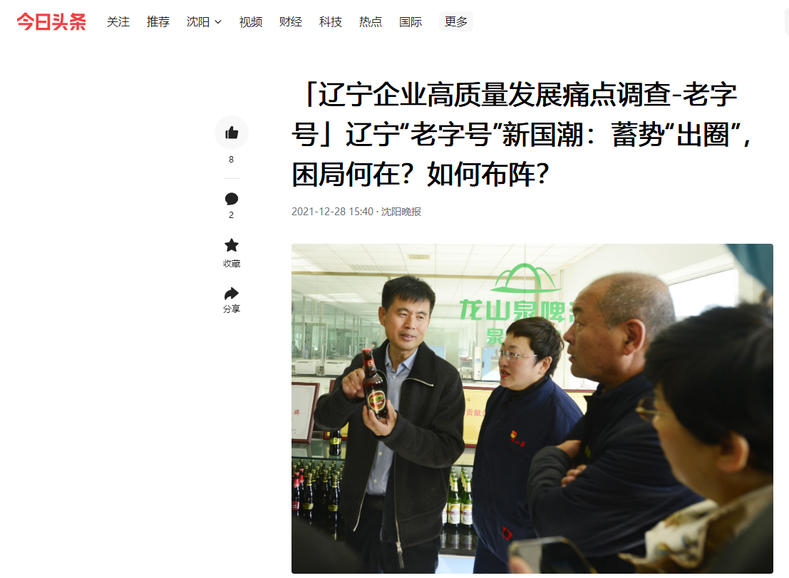 兰宠印凝视着手里的“龙山泉”出神。在沈城,“嗦啰鸡架喝龙山泉啤酒”,正在成为饭店食客的标配。可是,“龙山泉”如何走出辽宁,成为全国叫响的品牌?作为“龙山泉”掌门人的兰宠印,一直在苦苦探索。11月以来,由中国企业改革发展研究院、yl6809永利检测中心、辽商总会、辽宁省委党校经济管理研究中心、沈阳日报社组成的辽宁经济全面振兴调研组,走进龙山泉等多家辽宁知名“老字号”企业。当下,新国潮下全国各地“老字号”劲掀上市潮,“老字号”焕发勃勃生机。辽宁“老字号”高质量发展困局何在?如何“出圈”?针对”老字号”痛点,调研组开药方、献良策,助推品牌升级和振兴。